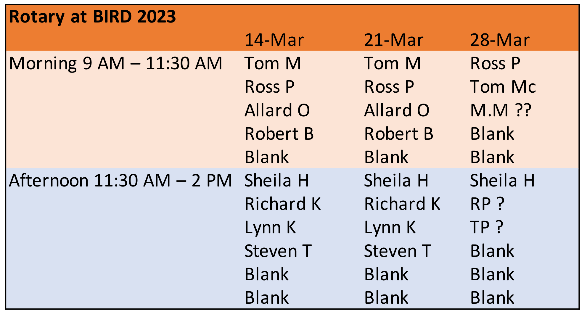Rotary BIRD Schedule 2023 By Rotary Admin | Published March 5, 2023 | Full size is 1983 × 1071 pixels 2021–22 Rotary Citation for the Rotary Club of Bowen Island T2324EN_Vertical_RGB